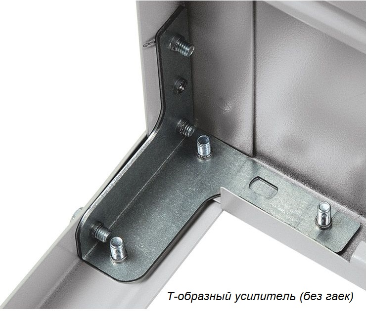 — нагрузка на полку с использованием Т-образных усилителей (без гаек) – 150 кг. - Грузоподъёмность стеллажа в стандартной комплектации (Г-образные усилители только на верхней и нижней полках) – 500 кг. При установке Г-образных усилителей на всех полках нагрузка на стеллаж увеличивается до 600 кг. При установке Т-образных усилителей на всех полках – до 750 кг.