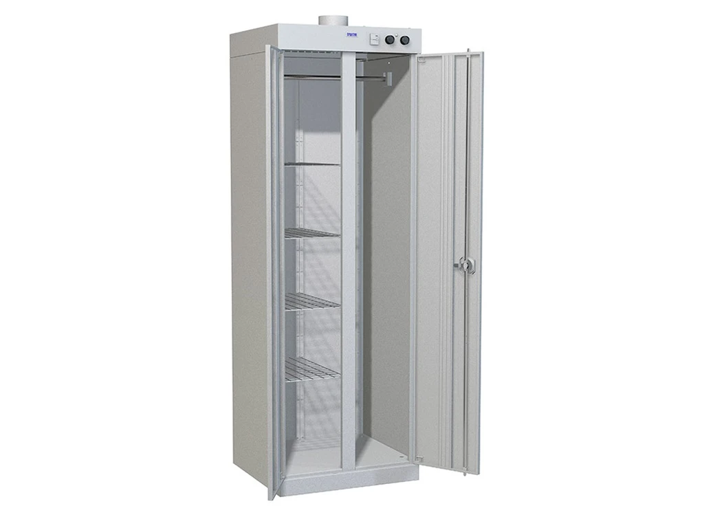 Шкафы Циклон 1965 предназначены для сушки влажного или мокрого белья и одежды, обуви, спортивной и рабочей формы, профессиональной униформы Сушка производится за счет циркуляции подогретого воздуха внутри шкафа. Могут применяться на строительных объектах, производствах, спортивных комплексах, детских садах, школах, буровых и нефтяных станциях, военизированных подразделениях и т.д. В шкафах имеется сетчатые полки, способные выдержать нагрузку до 10 кг. Вентилятор с мощностью 2500 Вт и производительностью 180 м3/ч позволяет просушить влажные и мокрые вещи. На шкафы установлен замок CyberLock CL/3P AM1 556-91 с 2-х сторонней ригельной системой запирания на 2000 комбинаций.Технические характеристики